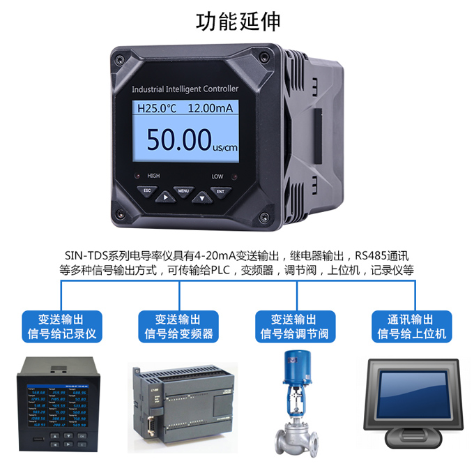 SIN-TDS210工業(yè)電導(dǎo)率儀表,可對(duì)各種工業(yè)用水的電導(dǎo)率(TDS)值進(jìn)行連續(xù)測(cè)量和控制。根據(jù)水工業(yè)的環(huán)境和特點(diǎn)結(jié)合國(guó)際供電標(biāo)準(zhǔn),考慮了特殊環(huán)境的電氣設(shè)計(jì)規(guī)范,增加了220VAC供電。