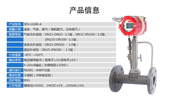 LUGB-SIN-A渦街流量儀表廣泛用于供熱公司、熱力公司、化工行業(yè)等行業(yè),對過熱蒸汽、飽和蒸汽、壓縮空氣和一般氣體、水和液體的計量和控制。加厚本體,可有效避免現(xiàn)場管道振動帶來的數(shù)據(jù)波動和誤差。多用于高溫場合,例如過熱蒸汽等工況。